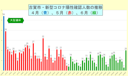 新型コロナ · 2022/07/01 6月30日 コロナ陽性確認は20人 再び増加か 6月30日の古賀市のコロナ陽性確認20人でした。10代未満4人、10代7人、20代1人、30代2人、40代5人、70代1人。また増えてきました。心配です。福岡県は1316人。 ここ1ヶ月間の推移をグラフにしました。 tagPlaceholderカテゴリ: